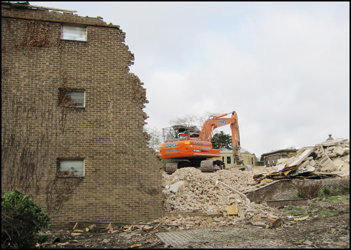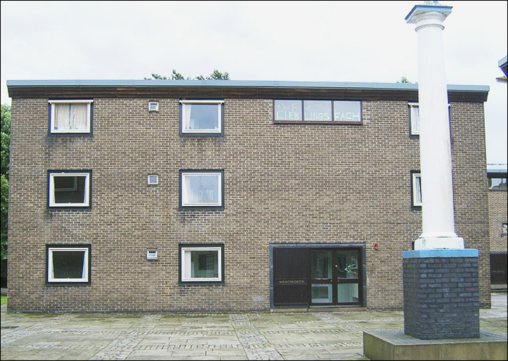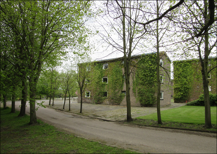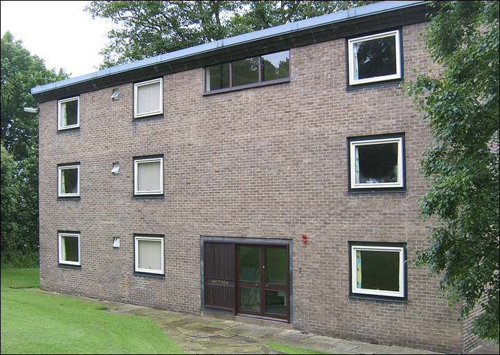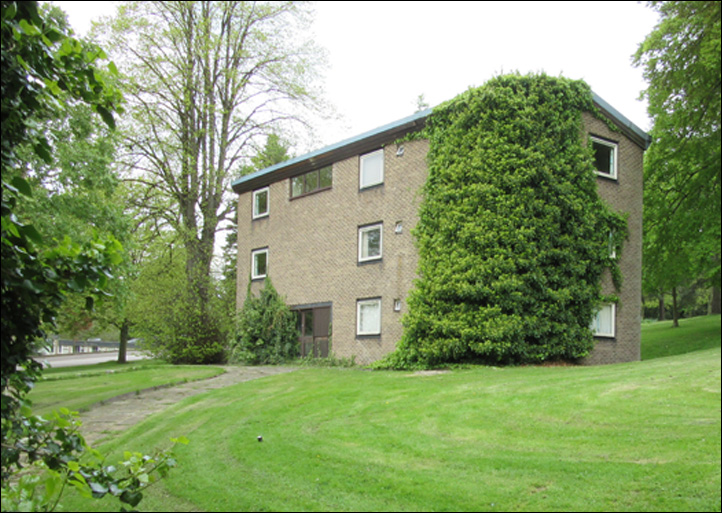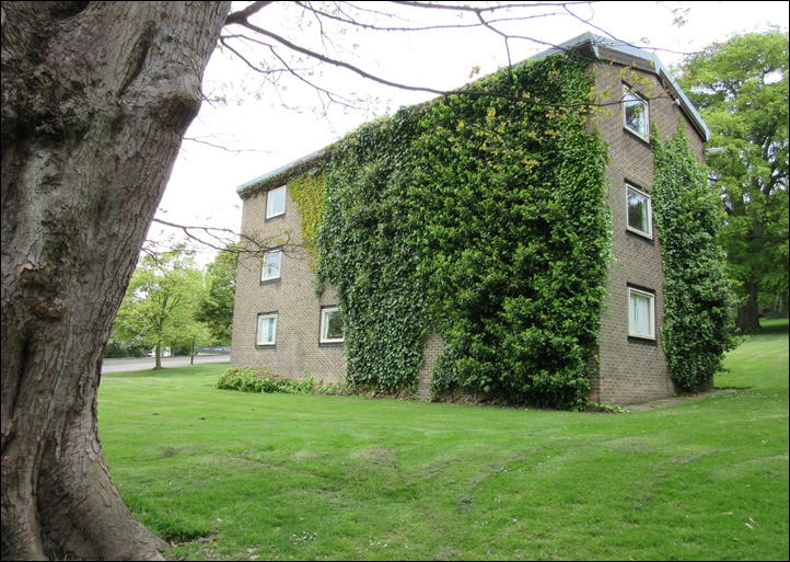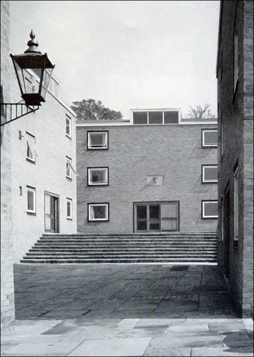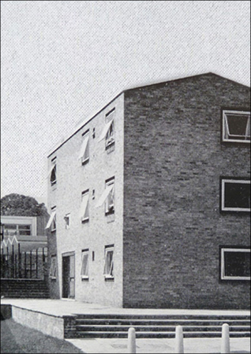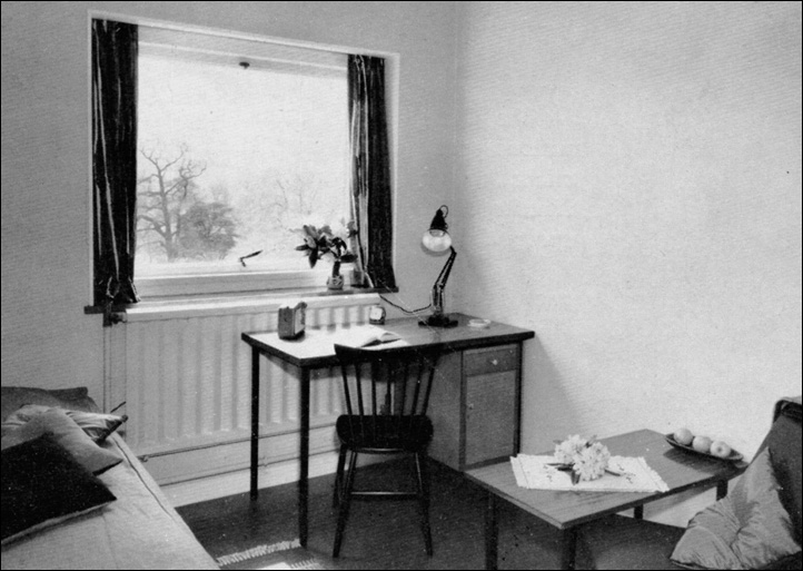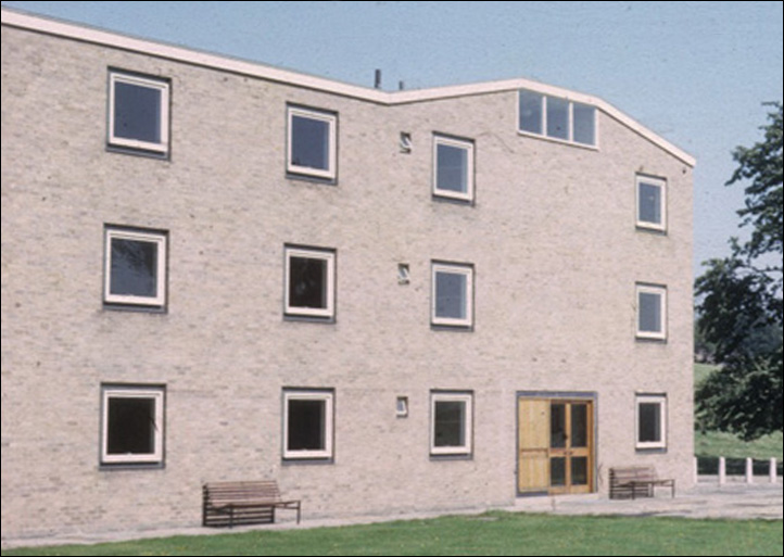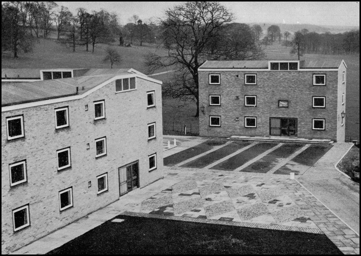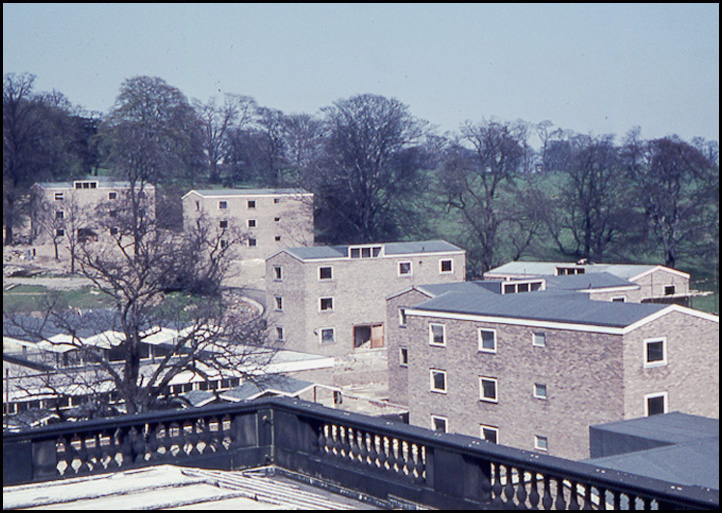 The architect (Derek Linstrum, F.R.I.B.A.) considered that the greatest problem was the siting of the new residential accommodation for students, each having a bed-sitting room and joint use of bathrooms and utility rooms. Eventually it was agreed that a number of blocks, each holding fifteen students, be erected in front of the main entrance to the Mansion.