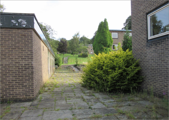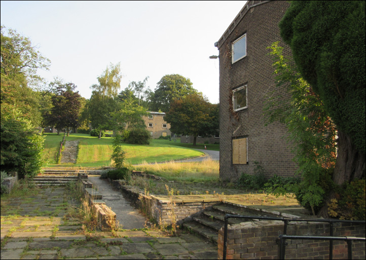 A complicated arrangement of paved squares, lawns, alleys and flights of steps was built up around the hostels.