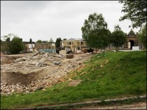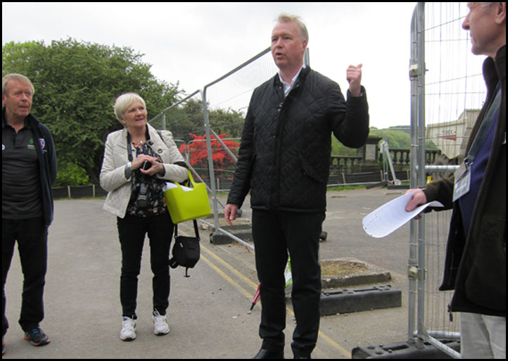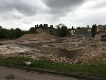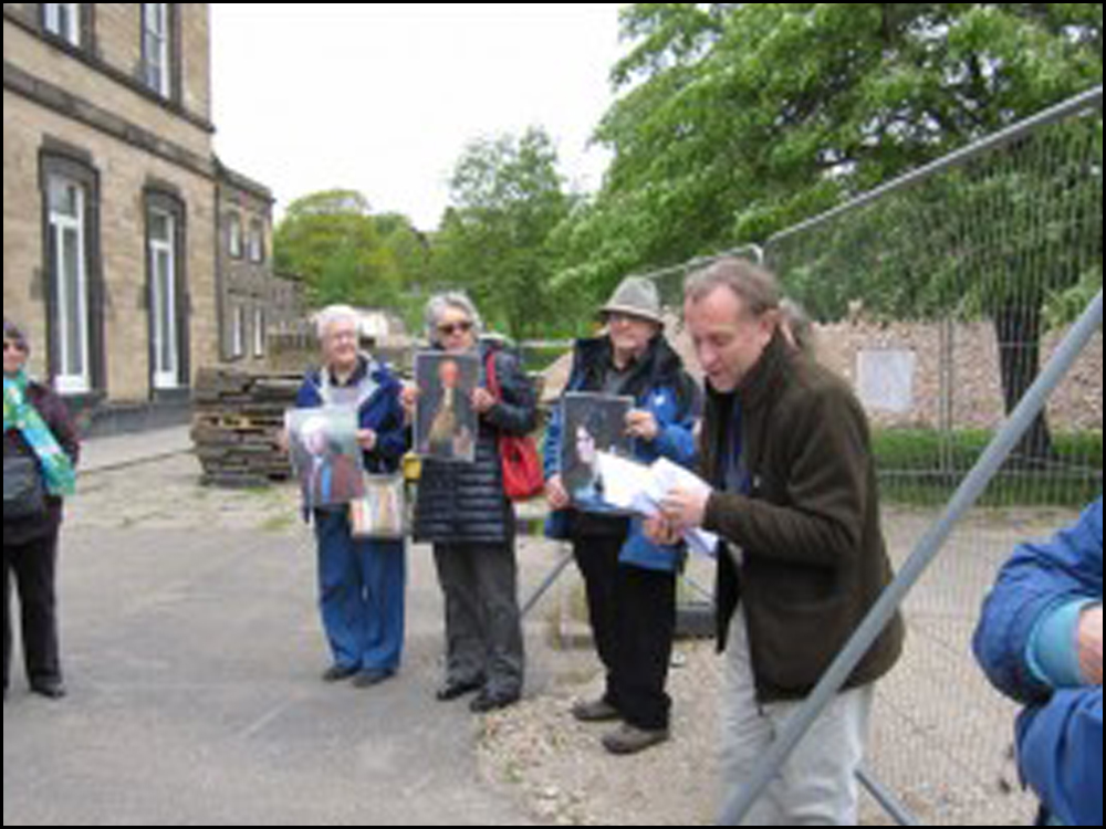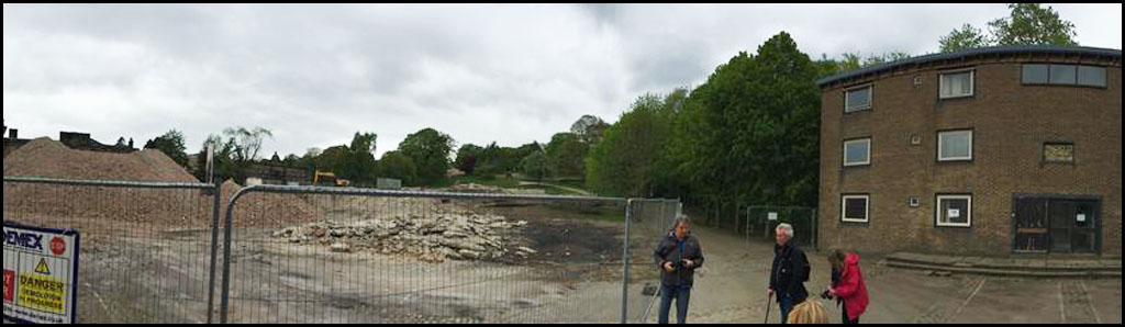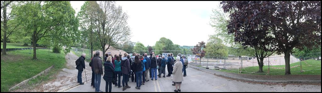 At 11 a.m., after assembling in the YSP main building, a group of 30 alumni were led by Richard Flowerday and Mark Finch (one of Rushbond's directors and our main contact) on a short walk to the secure site of the demolition of buildings.