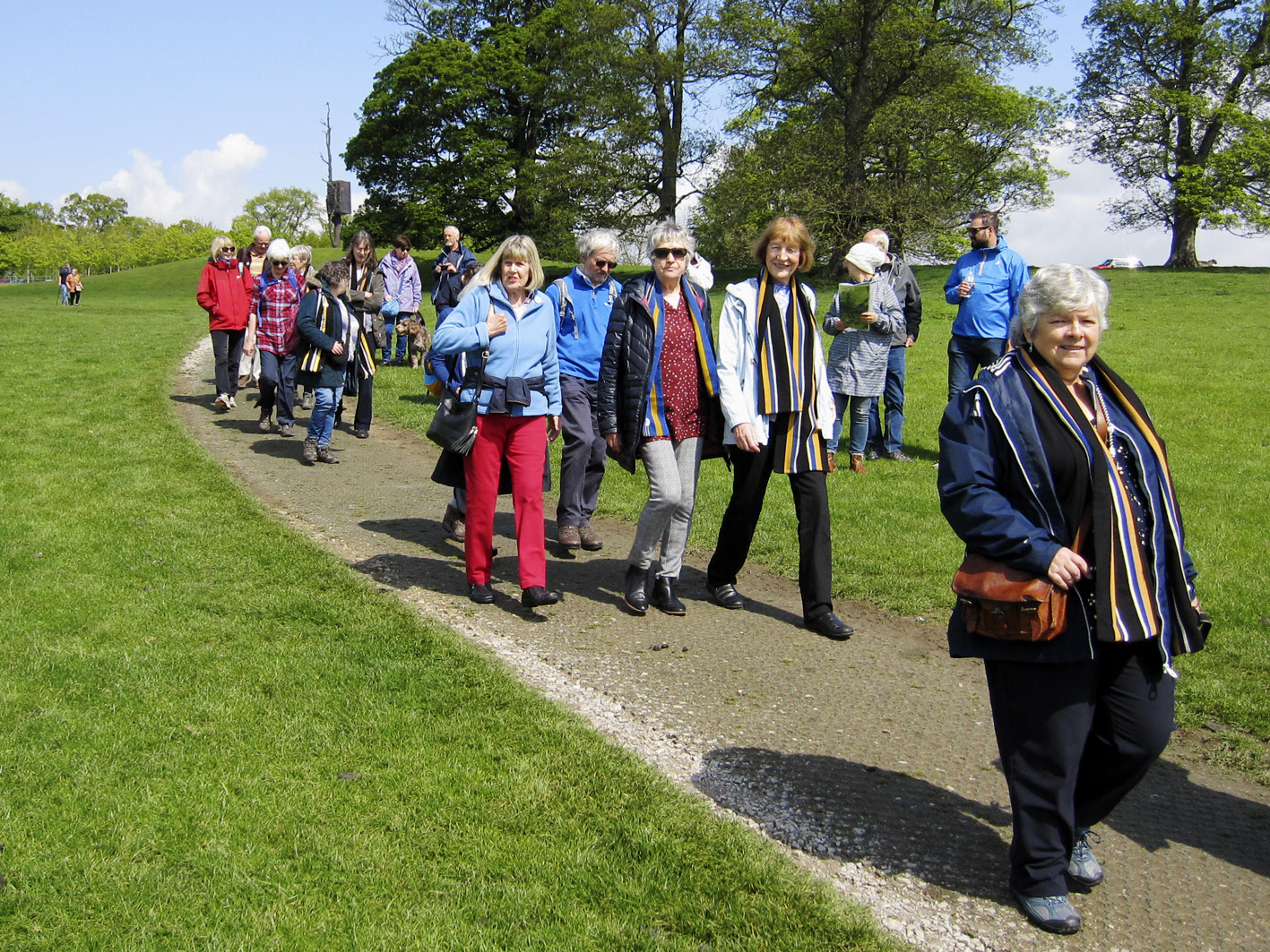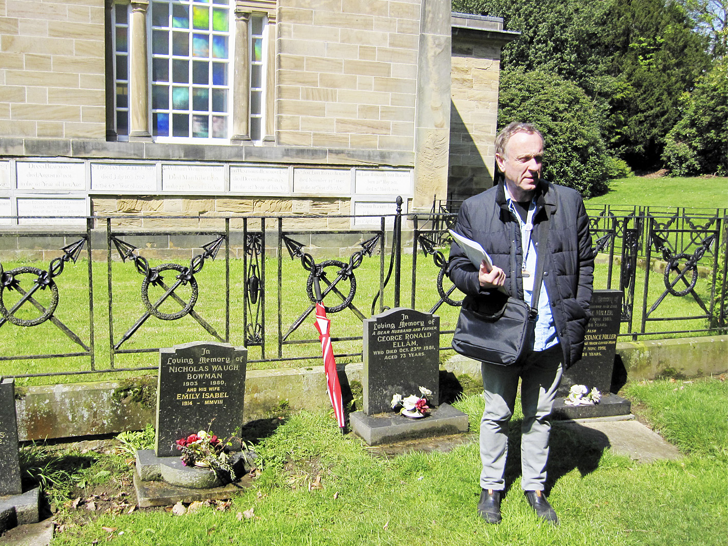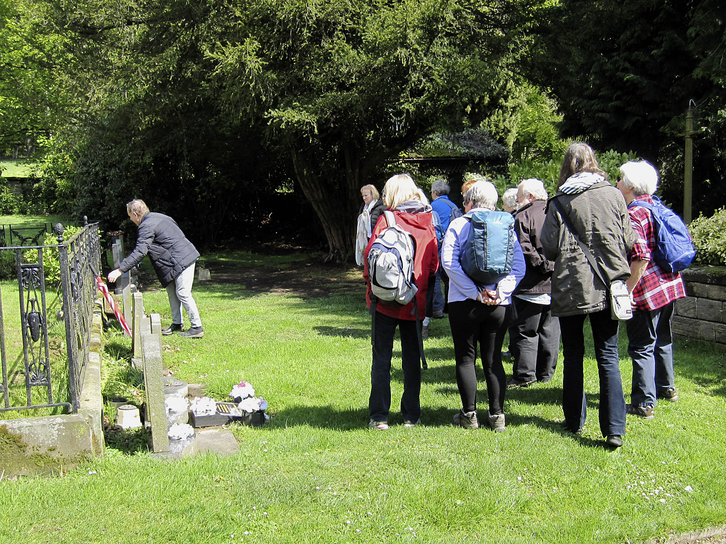 At 11 a.m. two walks took place - one led by Richard Flowerday and the other by Brian Pickersgill. Each group visited Bretton Chapel, where the gravestones of some former Bretton employees were identified .