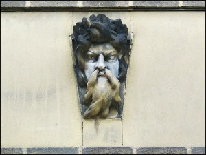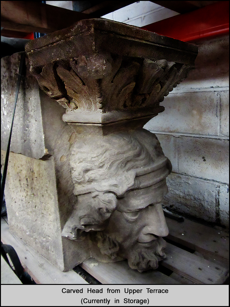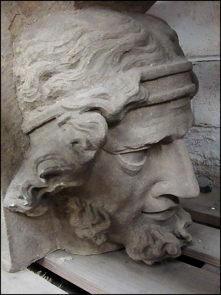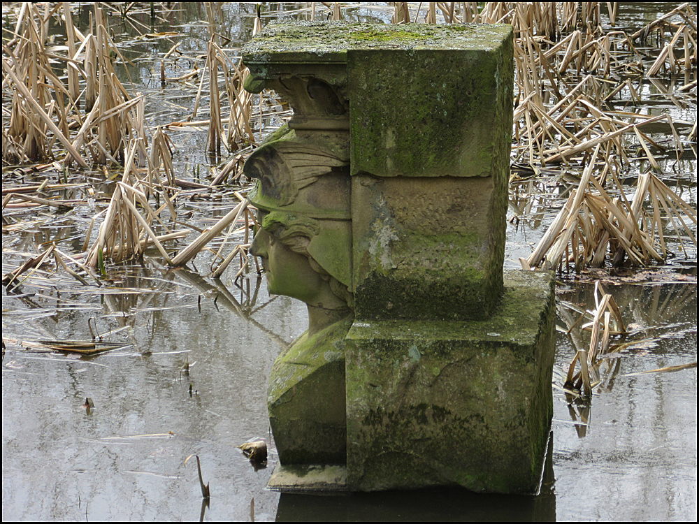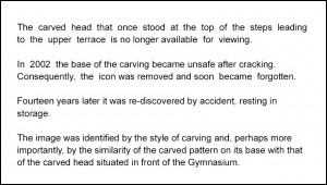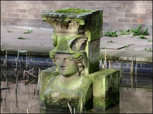 2 - a nineteenth century stone bust standing in the small lake adjacent to the former Gymnasium;