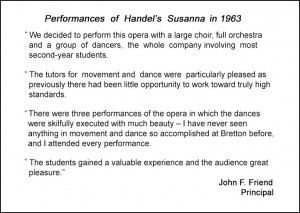 1955-64 Performances at Bretton Hall 1955-64 Click on images to enlarge 1955 images 1956 images 1957 images 1958 images 1959 images 1960 images 1961 images 1963 images 1964 images 1964 – madrigals 1964 Madrigals Danny Savage – 1964 Final Examination Danny Savage – 1964 Final Examination