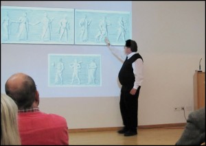 Dr David Hill presented his topic on 'The Bretton Marbles', two objects which were displayed in prominent positions at Bretton Hall from the 1960s onwards. One of the marbles was an imposing Greek altar, and the other a Corinthian well-head, otherwise known as a 'Puteal'.